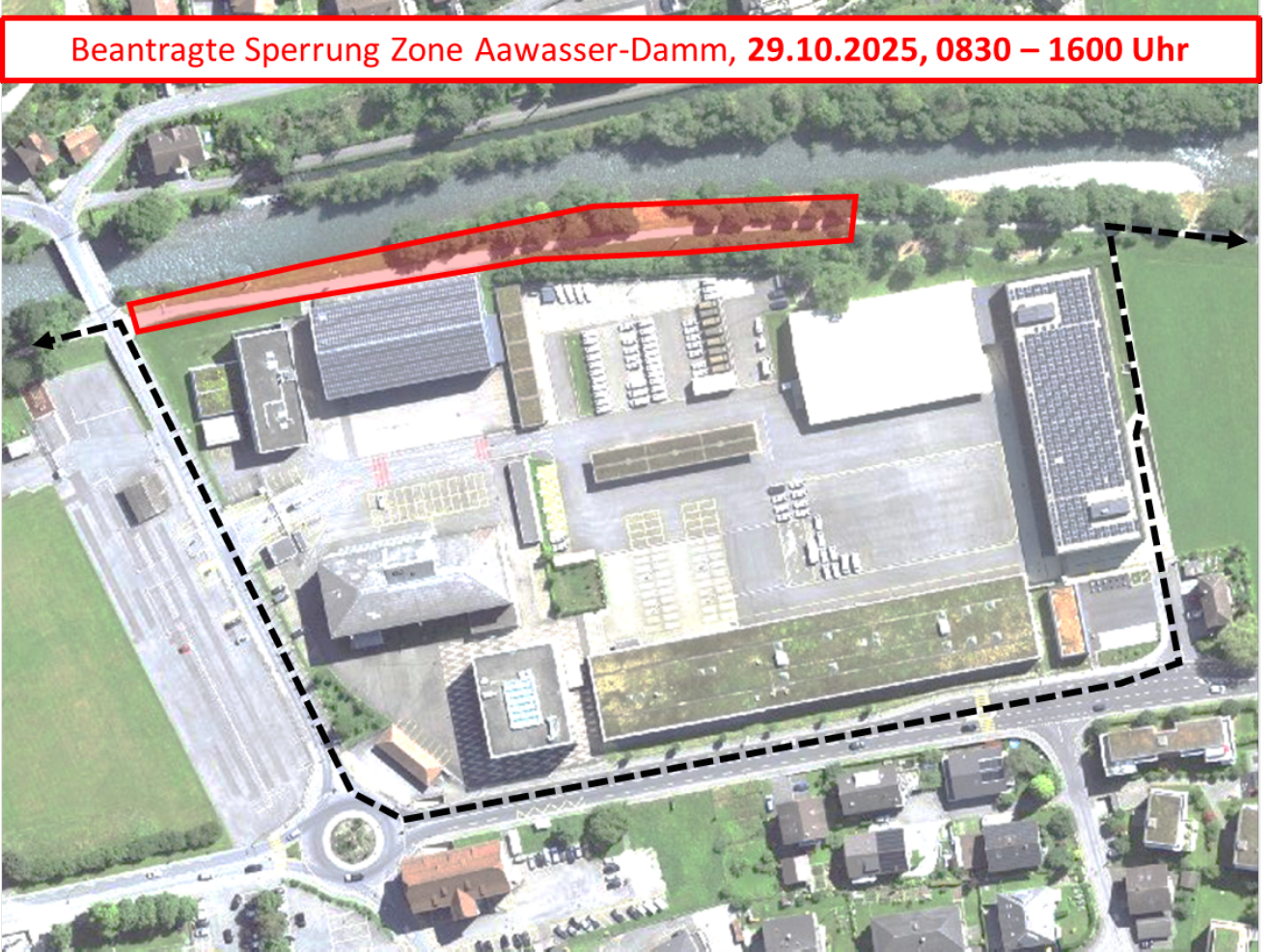 Am Mittwoch, 29. Oktober 2025, wird der Weg auf dem Aawasser-Damm aufgrund einer Veranstaltung der Schweizer Armee von 08.30 Uhr bis 16.00 Uhr gesperrt.